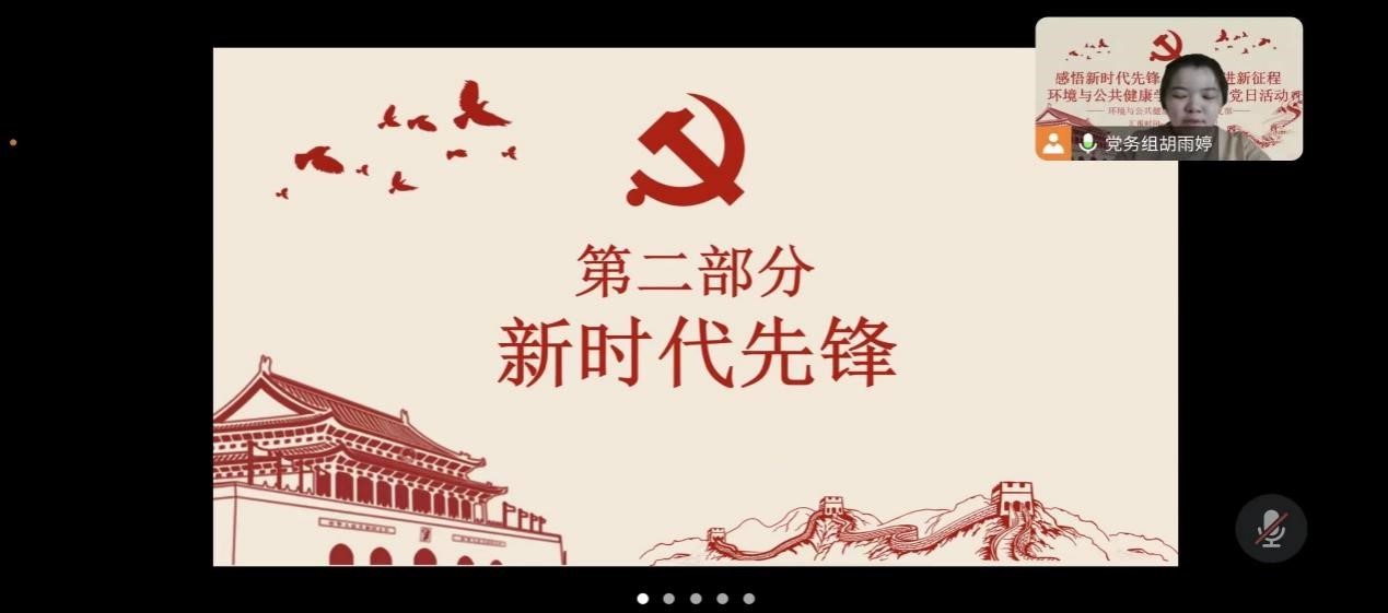 为进一步学习贯彻习近平新时代中国特色社会主义思想,弘扬党的光荣传统和优良作风,传承党的光辉使命,牢牢把握“学思想、强党性、重实践、建新功”总要求,充分发挥先进典型示范引领作用。环境与公共健康学院学生党支部于2023年8月29日召开线上“感悟新时代先锋,砥砺奋进新征程”主题党日活动。